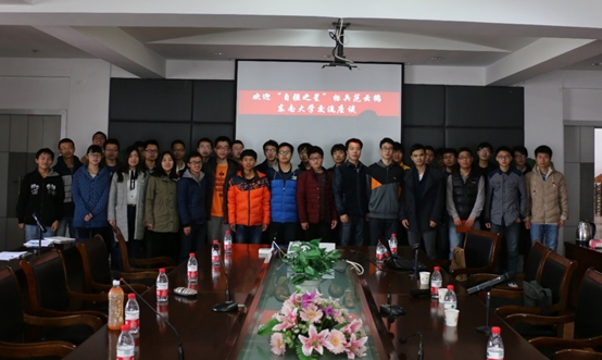 座谈最后,刘宗涛、董世坤老师代表校团委、机械学院团委和生医学院团委向范云鹤同学赠送了的纪念品,范云鹤同学表示希望东大的同学可以到他的母校川大进行交流访问。
