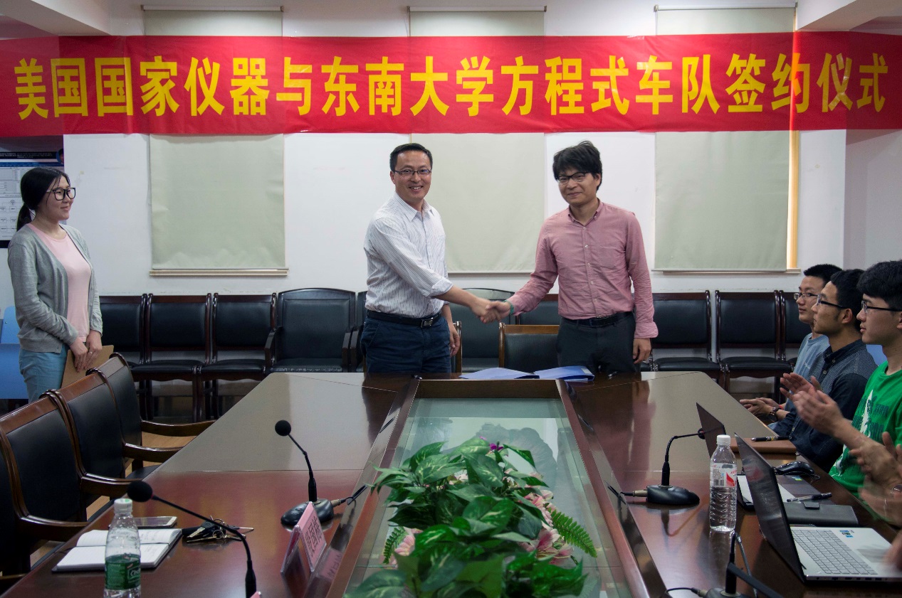 2015年5月7日,美国国家仪器公司(NI)与东南大学力魔车队和纯电动方程式车队在南京正式举行签约仪式,NI院校计划代表李甫成先生、东南大学教务处沈孝兵副处长等院校领导和车队的同学出席了此次签约仪式。为感谢NI向车队提供的硬件与技术支持,两支车队特授予美国国家仪器公司“铂金赞助商”称号,并希望充分利用NI的产品,用赛车优异的表现作为最大的回馈。