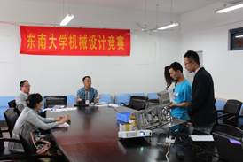 2015年5月17日上午在机械楼,学校举办了“东南大学第十三届机械创新设计竞赛”,本次竞赛的宗旨是充分利用大学生科技活动这个舞台,通过竞赛的形式给学生提供更多的实践机会,使学生学会主动地、创造性地在实践中学习,培养创新能力和团结协作的精神,同时在全校范围内选拔优秀学生组队参加江苏省、全国机械创新设计大赛。经过近5个月的准备,全校有63个团队报名参赛,参赛学生包括机械工程学院、能源与环境学院、吴健雄学院、土木工程学院、交通工程学院、电气工程学院、仪器科学与工程学院的二、三年级学生,经过前期的筛选,参加最终答辩的共有16支队伍。