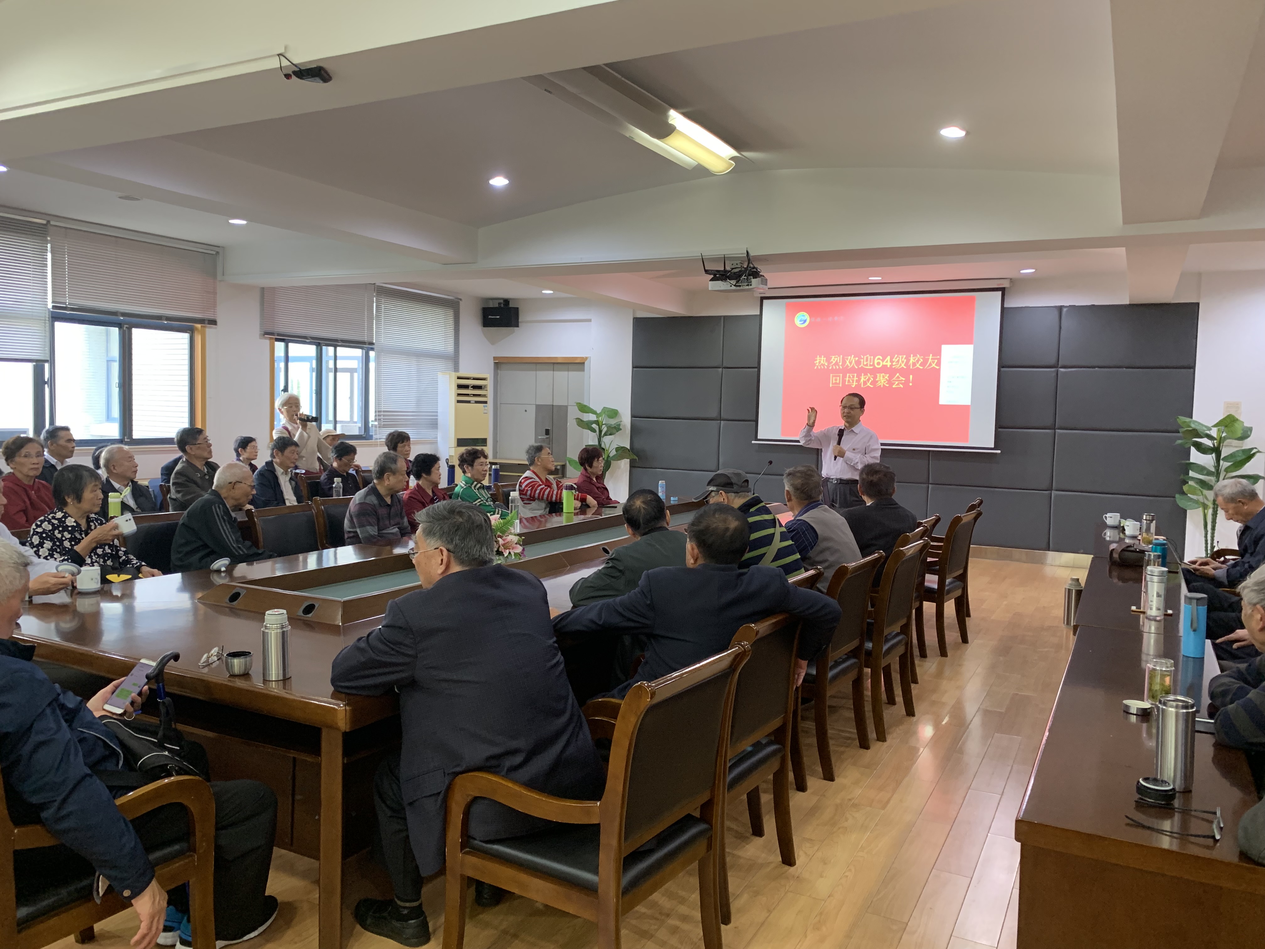 2019年10月20日上午,64级(3、4、5班)校友及亲属一行59人回母校聚会庆祝毕业五十周年。我院党委书记张志胜教授、校友会秘书付瑜老师热情接待校友,并对他们的到来表示欢迎!
