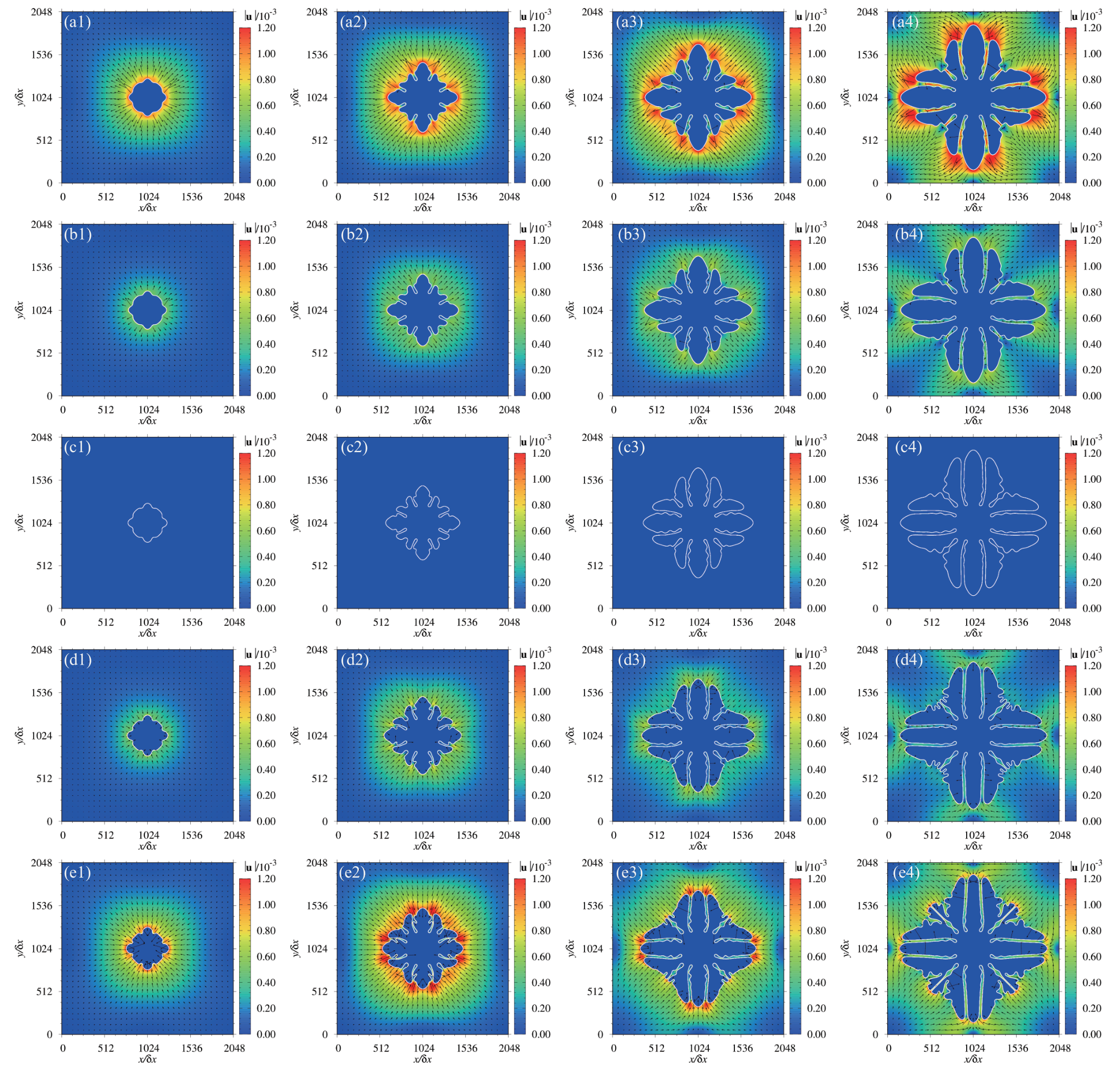近年来,格子玻尔兹曼方法在机械动力、材料化工、生物医学等工程及科学领域迅速发展,已成为介观尺度复杂系统建模和模拟的重要研究手段。论文从各向异性格子玻尔兹曼方程出发,通过引入与液固两相体系密度相关的势函数,获得了描述相变过程中密度变化诱导而形成的熔体流动,进而提出一种用于研究密度诱导流作用下晶体形貌形成规律的数值模型。该模型突破了传统研究思路的限制,从系统的介观本质刻画密度诱导效应及其对相变动力学的影响规律。