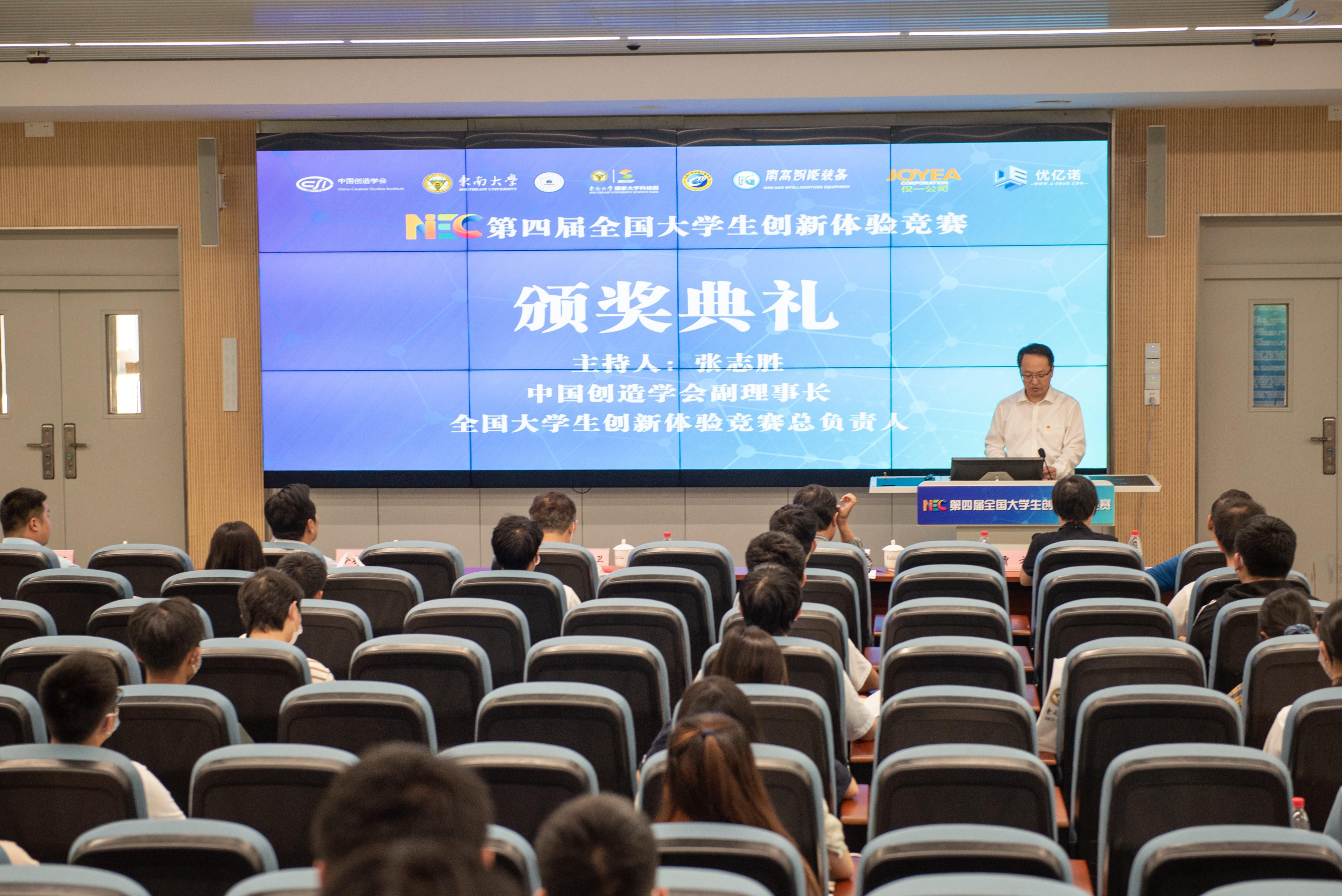 6月6日,第四届全国大学生创新体验竞赛颁奖典礼在东南大学九龙湖校区举行。本次竞赛由中国创造学会主办,东南大学和安徽工业大学联合承办,东南大学国家大学科技园、安徽工业大学创新教育学院、MK平台组织实施。中国创造学会常务副理事长张亚雷、东南大学党委副校长黄大卫、澳门中西文化创意产业促进会理事长李嘉曾出席并致辞,来自东南大学、安徽工业大学、中国创造学会、竞赛组委会及支持单位的代表以及部分参赛师生等参加了典礼。典礼由MK平台党委书记张志胜主持。
