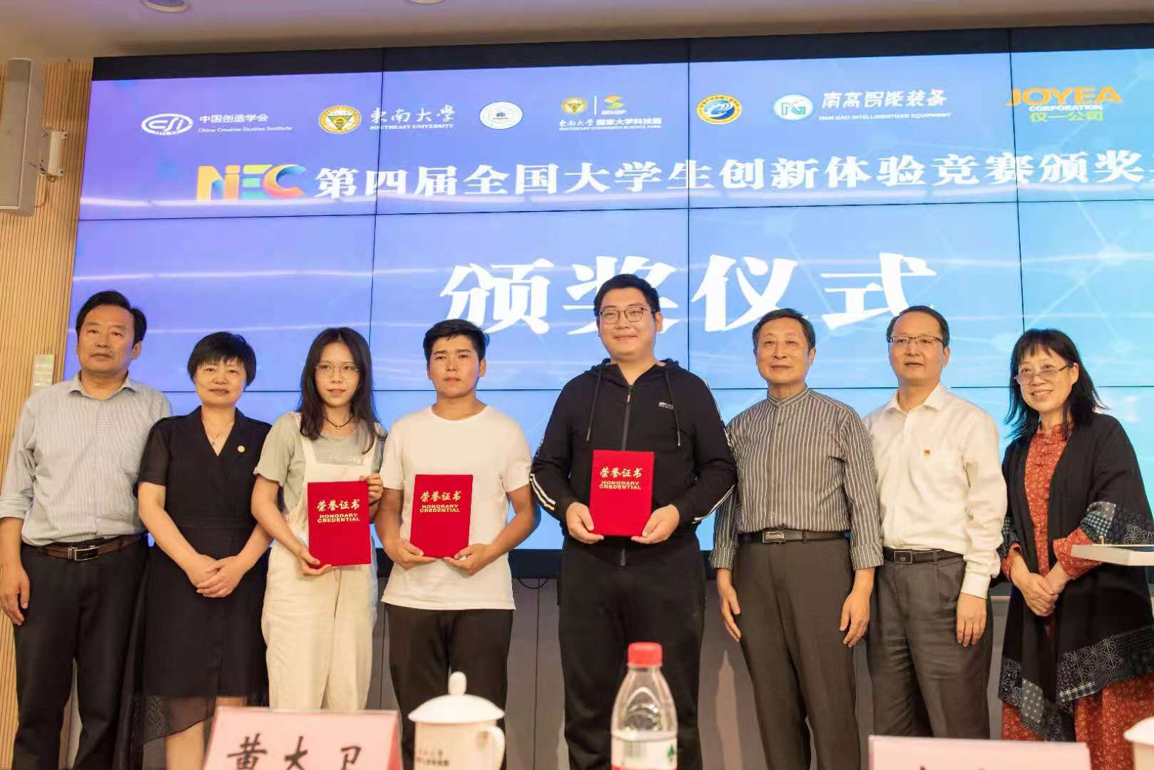 在颁奖环节中,竞赛评委会主席李嘉曾教授致颁奖辞并宣读了获奖名单。MK平台党委书记、中国创造学会副理事长张志胜,东大科技园总经理、竞赛组委会主任贾方,中国创造学会副秘书长、安徽工业大学教授冷护基分别为获奖代表颁发了获奖证书。