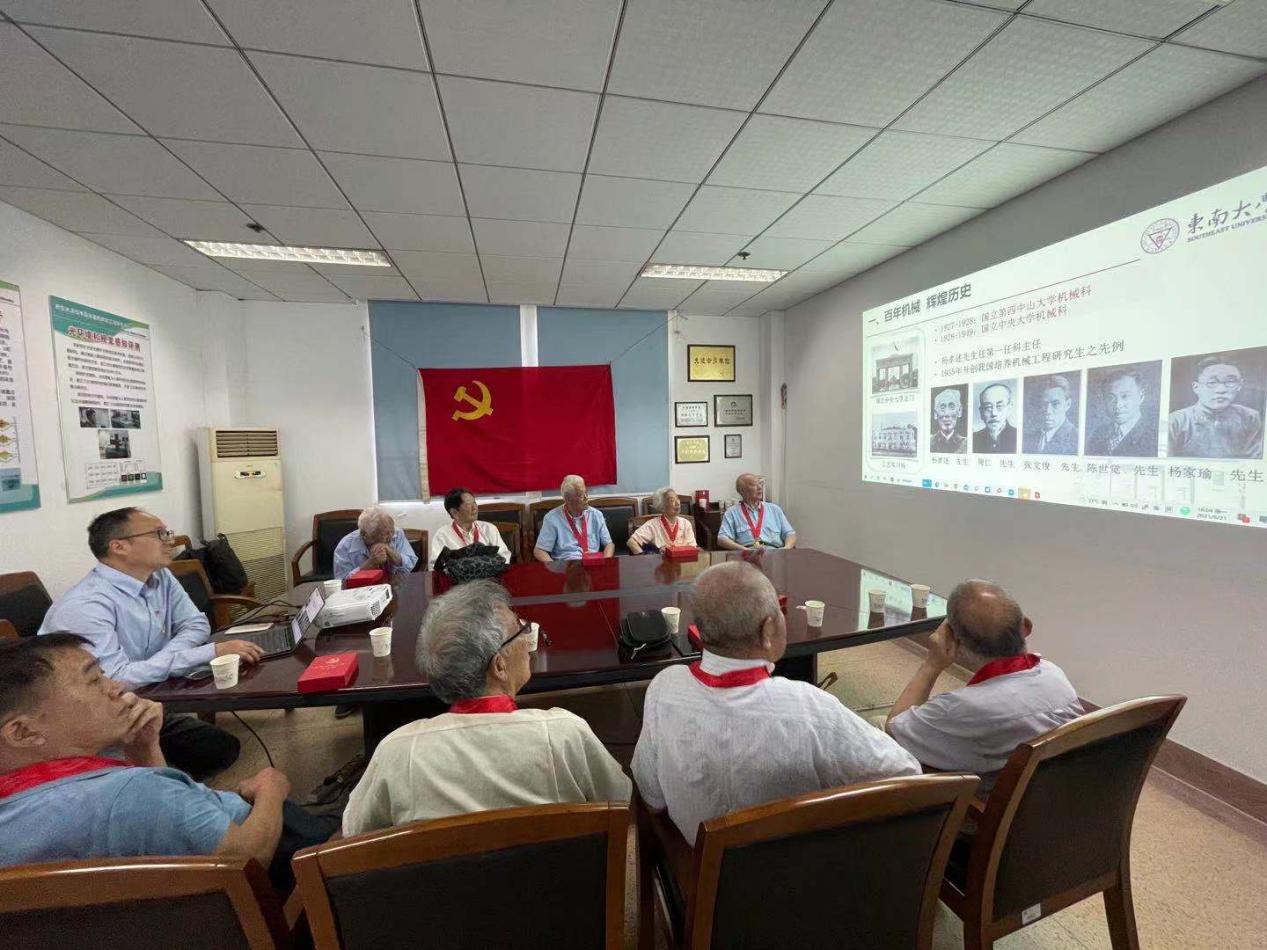 倪中华同志向老党员介绍机械工程学院的发展建设情况