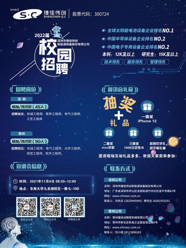 招聘岗位:机械工程师、软件工程师、电气工程师、工艺工程师,光学工程师、视觉工程师、软件工程师。