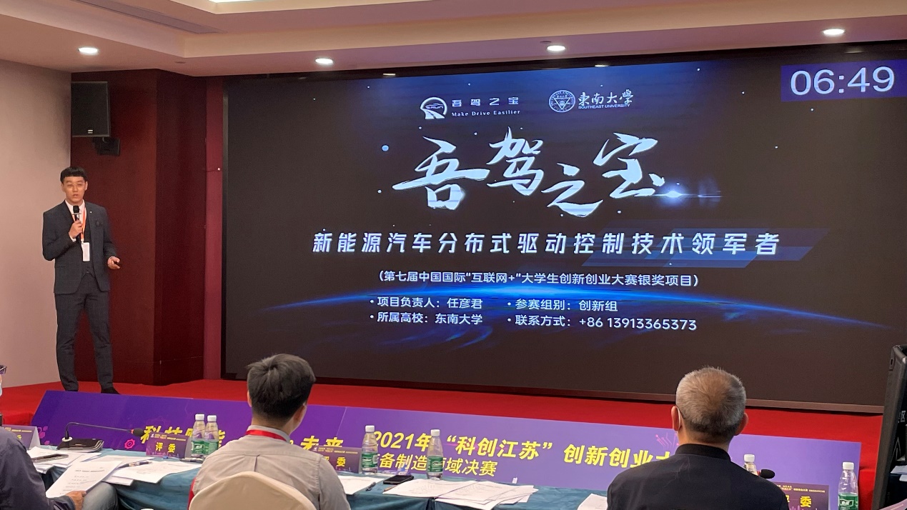 江苏省科协党组成员、副主席冯少东,团省委副书记张迎春,南京工程学院副校长朱晓春,省工信厅产业人才与合作处二级调研员秦飞出席了开幕式并共同启动大赛。在装备制造领域的决赛中,来自清华大学、同济大学、南京理工大学、东南大学、中国中车、国家电网、中电十四所等知名高校和大型国企的30个创新创业团队同台竞技。MK平台博士研究生任彦君牵头完成的“吾驾之宝:新能源汽车分布式驱动控制技术领军者”项目,通过精彩项目路演和答辩,得到了专家评审组一致认可,成功斩获大赛一等奖。我院近年来持续推动创新创业和实践育人工作深入开展,不断完善创新人才培养有效模式、激励方式和长效机制,强化学生科学精神和创新实践能力培养,该奖项是我院在“双创”领域斩获的又一重量级荣誉。