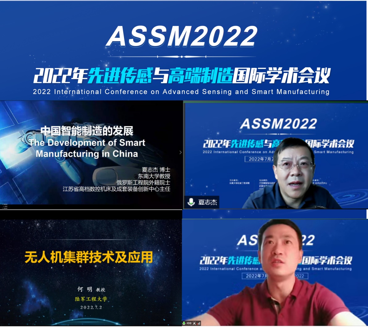 “先进传感与高端制造国际学术会议(ASSM 2022)”于2022年7月2日在南京召开(线上)。本次会议由MK平台主办,江苏省高档数控机床及成套装备创新中心、新型光源技术及装备教育部工程研究中心、江苏省微纳生物医疗器械设计与制造重点实验室、江苏省空天机械装备工程研究中心、安徽理工大学、河海大学、合肥工业大学等协办。