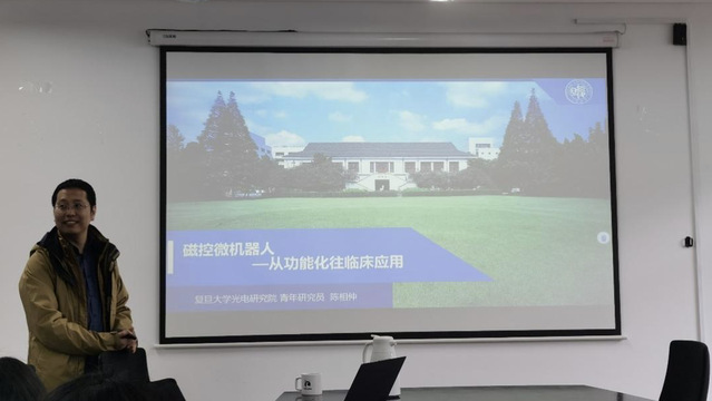 磁控微机器人可以在狭窄空间(例如血管和胃肠道)中执行特定任务,经过多年的发展,磁控微机器人已经经过了“概念验证”阶段,在现实世界中显示出了巨大的应用前景,尤其是在微创手术、靶向药物输送等医学方面。3月28日,复旦大学光电研究院青年研究员陈相仲老师应邀来我院,开展“磁控微机器人——从功能化往临床应用”的主题讲座,本次讲座吸引了本院众多师生的积极参与。机械工程学院王乾乾老师为本次讲座主持人。