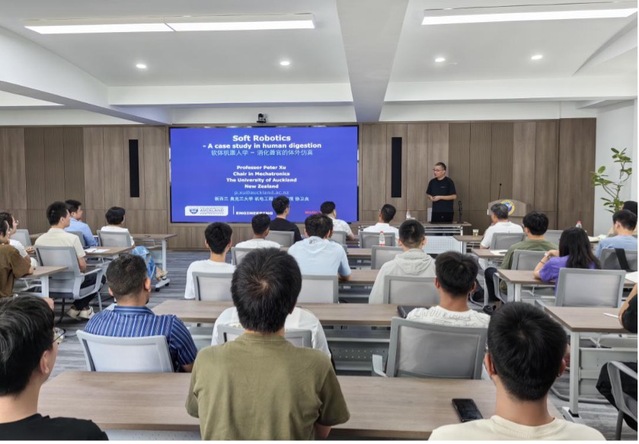 近年来,软体机器人技术的发展使得设计和制造更加灵活,能够适应复杂的环境和人体器官的特殊形状。这种灵活性和可塑性对于模拟消化系统的复杂运动和环境至关重要。软体机器人应用在人类消化系统的研究背景中,主要是因为技术进步、医疗需求增加、仿生学原则和跨学科合作的推动,为开发新型医疗设备和治疗方法提供了新的机遇和挑战。6月18日,新西兰奥克兰大学机械电子系首席教授、机械电子工程荣誉学士课程主任Peter Xu应邀莅临我院,开展“新质装备前沿讲堂”大师论坛的第二十一场,主题为“软体机器人学—消化器官体外仿真”的讲座,本次讲座吸引了本院师生的积极参与。