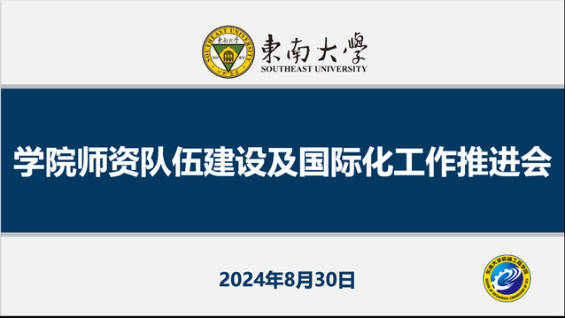 为推进学院师资队伍及国际化建设,围绕“双一流”建设目标、深入研讨“一号工程”,推进学院引人育人及国际化快速发展,2024 年 8 月 30日,学院召开本月度师资队伍建设及国际化工作推进会,学院相关领导、各教学科研单位的支部书记及院办秘书参加会议,会议由王乾乾副院长主持。