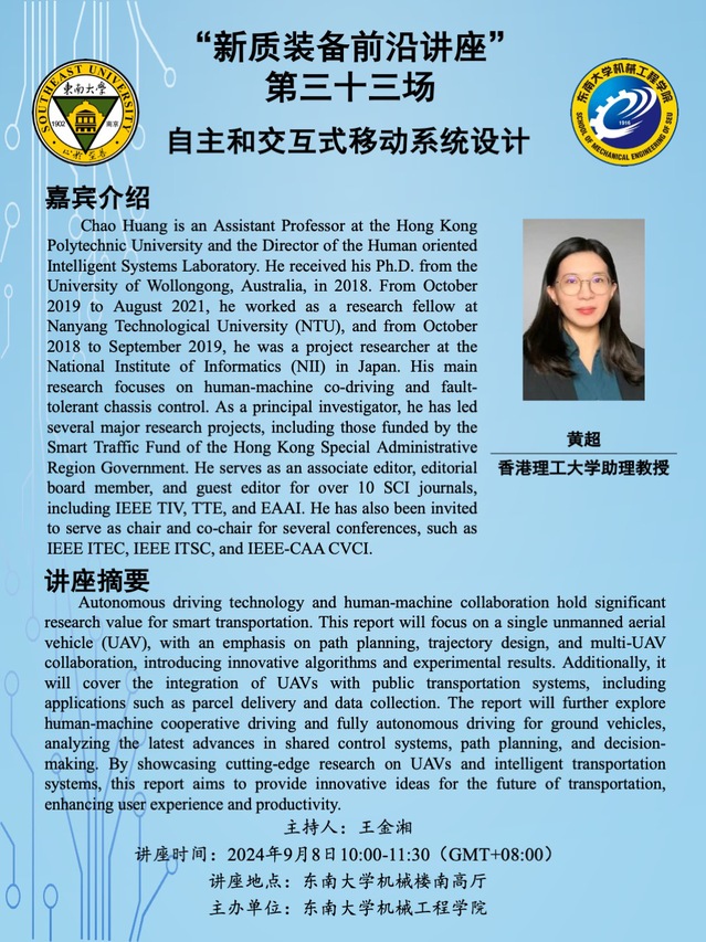 “新质装备前沿讲座” 第三十三场:黄超教授——自主和交互式移动系统设计