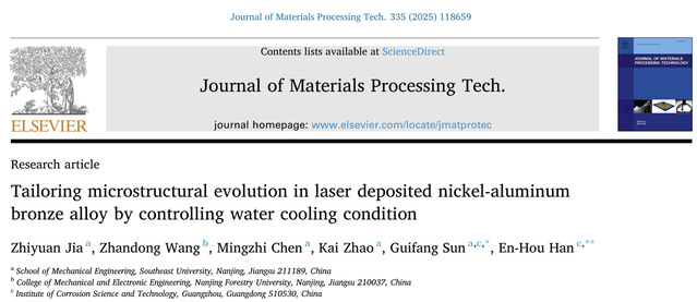 近日,MK平台孙桂芳教授与广东腐蚀科学与技术创新研究院韩恩厚院士团队合作在通过水冷条件控制镍铝青铜合金微观结构演变取得重要进展。受镍铝青铜水下原位修复应用需求的启发,研究提出水冷条件是否有利于修复过程中形成适当的冷却速率,以防止粗大κ相的形成。采用陆上激光直接金属沉积和水下激光直接金属沉积技术对镍铝青铜基板上的梯形凹槽进行修复,系统阐明了快速冷却速率对于镍铝青铜多类型κ析出相的多重影响。相关研究成果已于近日发表在国际制造领域顶TOP期刊《Journal of Materials Processing Technology》。