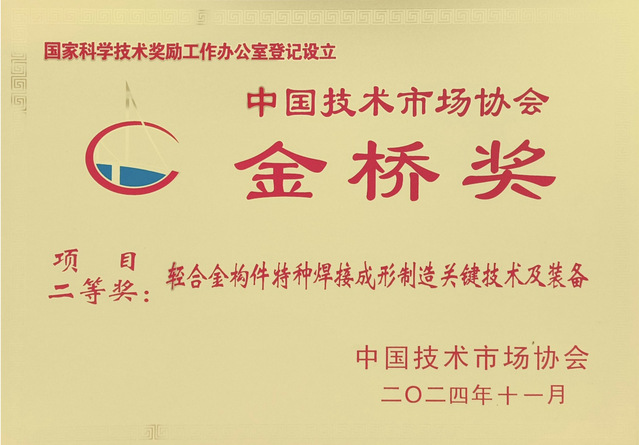 2024年12月12-14日,第十二届中国技术市场协会金桥奖励大会暨第十一届中国科技服务业论坛在北京友谊宾馆召开,我院机械制造系刘小超副教授牵头、联合山东大学申报的“轻合金构件特种焊接成形制造关键技术与装备”项目荣获二等奖。