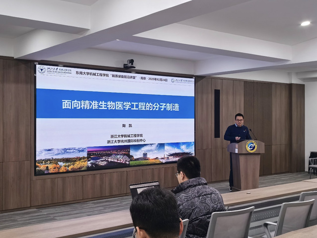 2月24日,机械工程学院邀请制造技术领域青年学者、国家高层次青年人才计划获得者陶凯教授在机械楼南高厅为我院师生就“面向精准生物医学工程的分子制造”开展了学术讲座,陶凯教授分享了团队的主要研究工作,通过操控分子自组装与阵列化/跨尺度序构,制备原子尺度上精准、客制化形性的超分子结构/元器件,并以此设计制造高精度、可调制的客制化生物医疗器械,可实现高精准的生物-器件界面交互。本次讲座由我院医学装备系主任司伟老师主持,我院相关研究领域的数十位师生参加了本次讲座。
