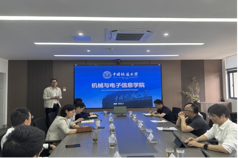 2025年4月28日,中国地质大学(武汉)机械与电子信息学院党委书记瞿祥华、院长宁伏龙、副院长文国军、副院长黄田野、机械工程教学实验中心主任赵权等一行莅临我院调研交流。我院党委书记王军、院长费庆国、副院长刘晓军、院长助理李彦斌和胡涛等参加了交流。调研交流会由王军主持。