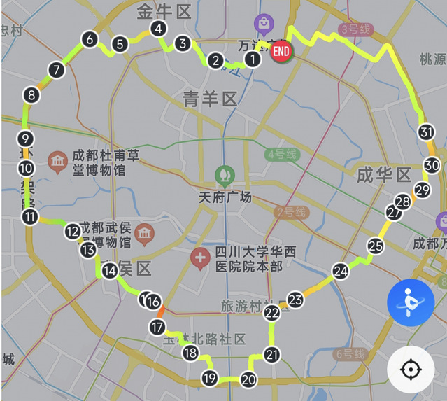 虽然错过了那一年的校运会和高校百英里比赛,但我告诉自己:“来日方长。”在毕业前的那个夏天,我和一群志同道合的跑友, 在滚烫的成都街头完成了一场32公里的奔跑,我们奔跑的轨迹在地图上画出了一颗“心”,也在青春记忆中留下了浓墨重彩的一笔。那一刻,我知道:我真的回来了。