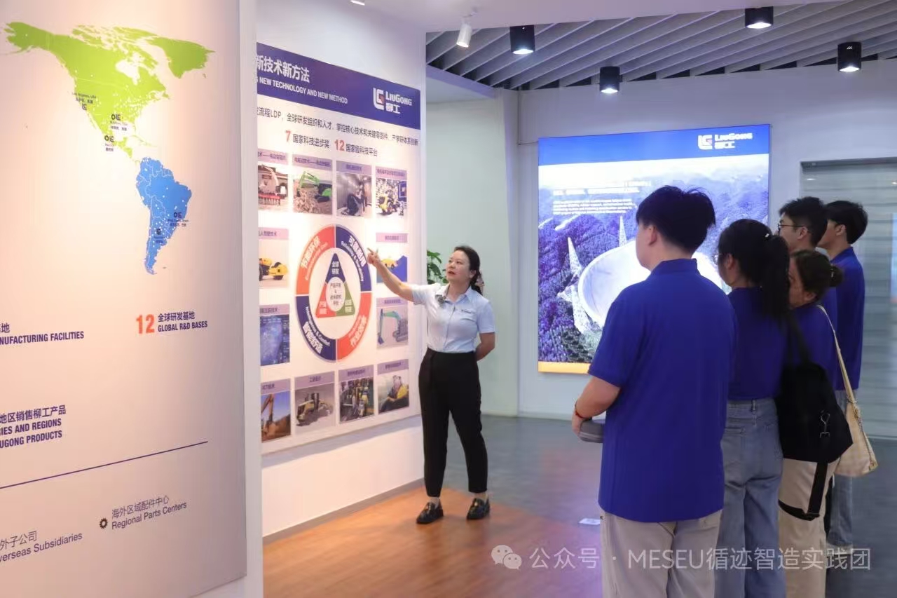 在广西柳工,师生团队参观了柳工研发中心和挖掘机、装载机等产品生产线,详细了解企业在新产品开发、智能制造等方面的实践成果。柳工新科技研究院高级工程师、东南大学2022届博士毕业生伍建伟开展题为“工业机械设计变革——数字仿真正向设计的发展与展望”的专题技术讲座,结合自身从事科研转化的工作体会,阐释了机械工程前沿技术与产业应用深度融合的路径与前景。
