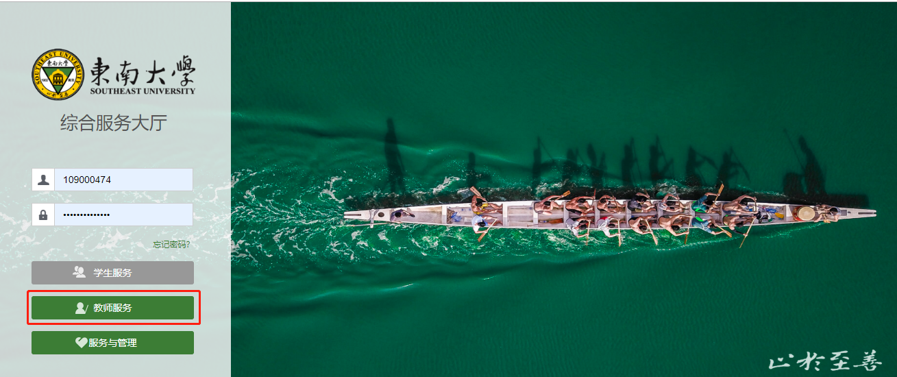 进入网上办事大厅:http://ehall.seu.edu.cn输入本人一卡通号、密码,点击“教师服务”登录。如图1-2-1所示。