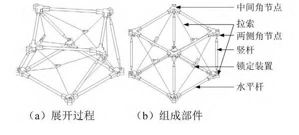 针对某一维可展桁架的球形铰链连接,利用动力学模型修正方法识别了其连接刚度特性。将可展结构进行简化处理,使其处于展开锁定状态,单独考虑铰链刚度。对锁定后的展开单元进行精细化有限元建模,利用接触分析方法,得到球铰连接等效线性刚度初值。建立展开单元的参数化模型,并采用六向刚度弹簧单元对球铰连接进行等效线性处理。对锁定状态下的可展开结构单元进行模态测试,利用试验模态参数识别球铰的连接刚度。将识别的连接刚度值带入由三个展开单元组成的一维可展桁架,通过与试验模态数据对比验证了识别结果的准确性。研究结果表明,利用该基于动力学模型修正的空间可展开结构球铰连接刚度识别方法,能够准确识别球铰连接刚度,建立准确的动力学分析模型。