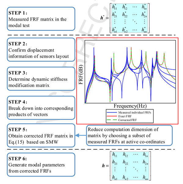 In the modal test of lightweight structures, the measured data is easily polluted by mass loading effects of transducers. A method is proposed to eliminate the influence of sensors for accurately estimating the frequency response functions (FRFs) of structures. Considering the situation that the multiple accelerometers lead to changes in the dynamic stiffness matrix, the corrected FRFs are derived from the original measured signals based on the Sherman-Morrison-Woodbury formula. The salient feature of the proposed strategy is that the adverse effects of sensors can be eliminated in only one step. Numerical simulations are conducted by employing a six-degrees of freedom spring-mass system, modal frequencies and mode shapes with high accuracy are obtained by measured signals. Experimental investigation is undertaken by using a laboratory solar panel. Results show that the effects of multi-transducers mass can be removed efficiently and the corrected FRFs are in good agreement with the targeted values. The excitation and measurement points are regarded as active coordinates, and the computational efficiency can be significantly improved when the presented method is applied on active coordinates.
