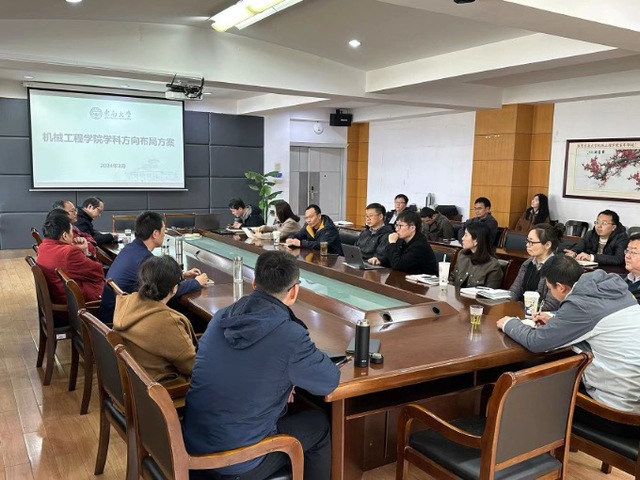 To implement the 'Number One Task' and the 'Number One Project' under the guidance of the disciplinary planning, the Academic Committee of the School of Mechanical Engineering convened a meeting on March 12th to review the layout plan of disciplinary directions. The meeting was chaired by Professor Chen Yunfei, the director of the Academic Committee of the school, with members of the school leadership team, heads of various departments, and branch secretaries attending.