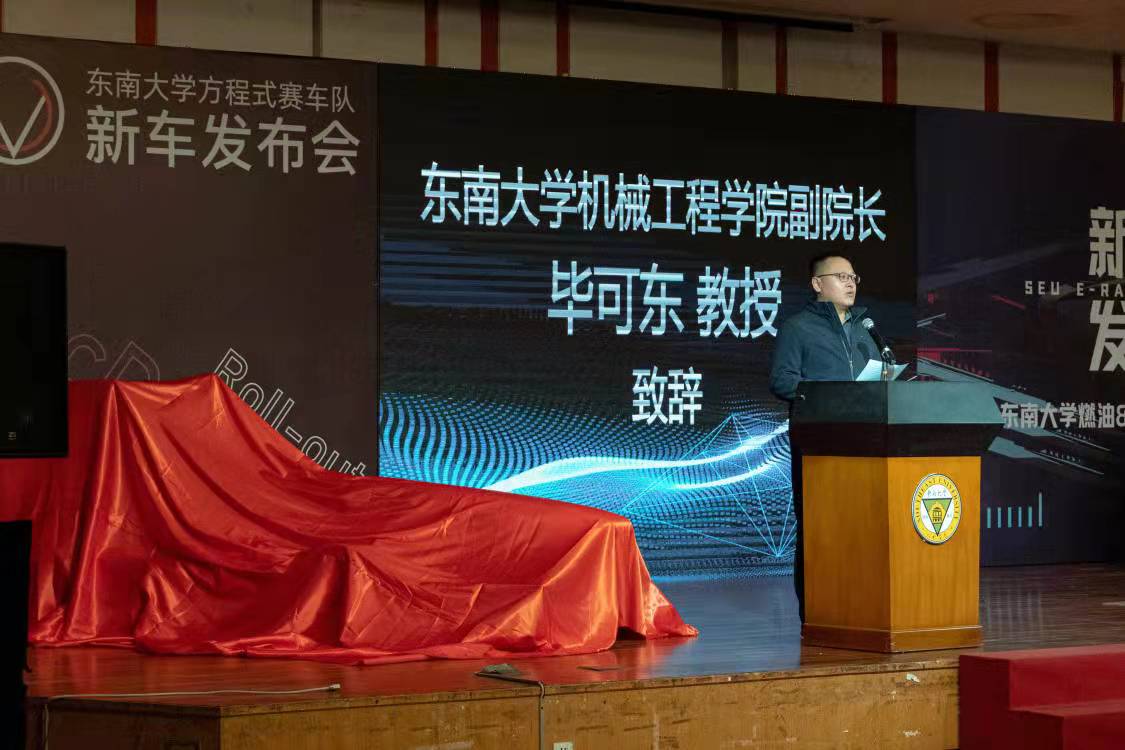 2021119日,东南大学燃油&纯电动方程式赛车新车发布会于焦廷标馆二楼多功能厅举办。东南大学副校长金石、东南大学教务处处长殷国栋、MK平台党委副书记兼副院长王斌、MK平台副院长毕可东、东南大学人工智能学院副院长董永强、东南大学仪器科学与工程学院副院长祝雪芬、东南大学经济管理学院副院长浦正宁、东南大学电子科学与工程学院副书记曹奕、国家大学科技园部长李大肥,学校相关职能部门负责人、机械工程学院相关领导老师、东南大学方程式赛车协会赞助企业代表等出席发布会。