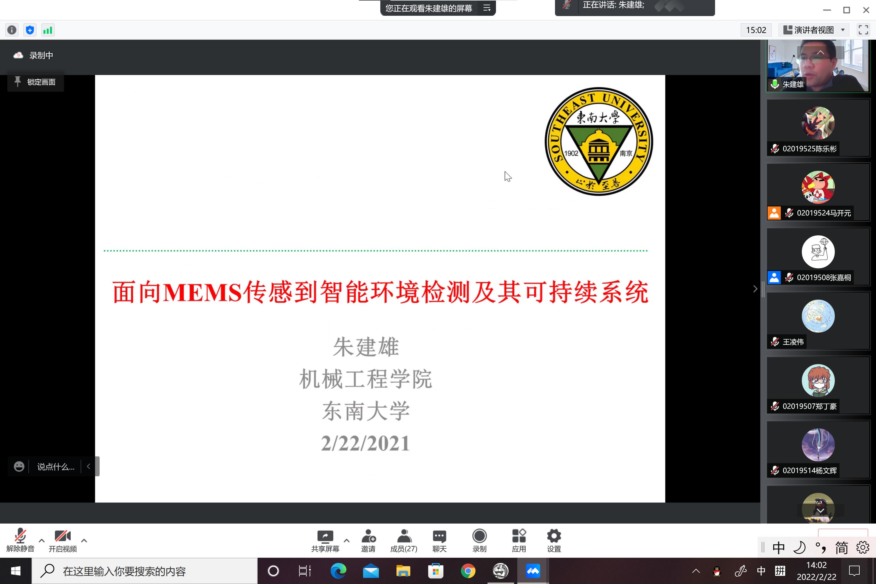 2月22日,MK平台硕士生导师朱建雄老师为机械工程学院全体同学带来了一场别开生面的讲座,围绕面向MEMS传感到智能环境检测及其可持续系统这一主题,朱建雄老师从MEMS的发展历史与趋势出发,分析了其商业化面临的挑战,并着力于MEMS传感技术微型化、无源化、兼容性以及系统化这四个方面为我们详细介绍了MEMS传感的原理与应用。朱建雄老师列举从智慧城市到智能家居再到数字阮生、人体健康检测等领域的大量例子为同学们深动形象的展示了面向MEMS传感到智能环境检测及其可持续系统在面向物联网、智能制造以及大健康等领域的广泛应用。同时朱建雄老师也讲座过程中对于各种检测的机理深入浅出的为同学们做了介绍。最后朱建雄老师给同学们展示了自己在面向MEMS传感到智能环境检测及其可持续系统方面的一些研究成果,并与同学们做出了一些交流探讨,通过这场讲座,同学们对MEMS有了一定的了解,也明白了该项技术良好的前景。