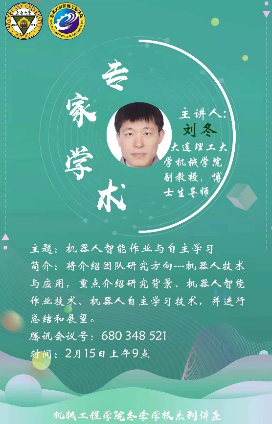 为拓宽同学们的视野,丰富学习生活,帮助同学们了解机械的前沿技术及其应用,同时响应国家智能制造战略。在冬季学校期间,机械工程学院重磅推出专家学者学术系列讲座,共分为以下四个主题。