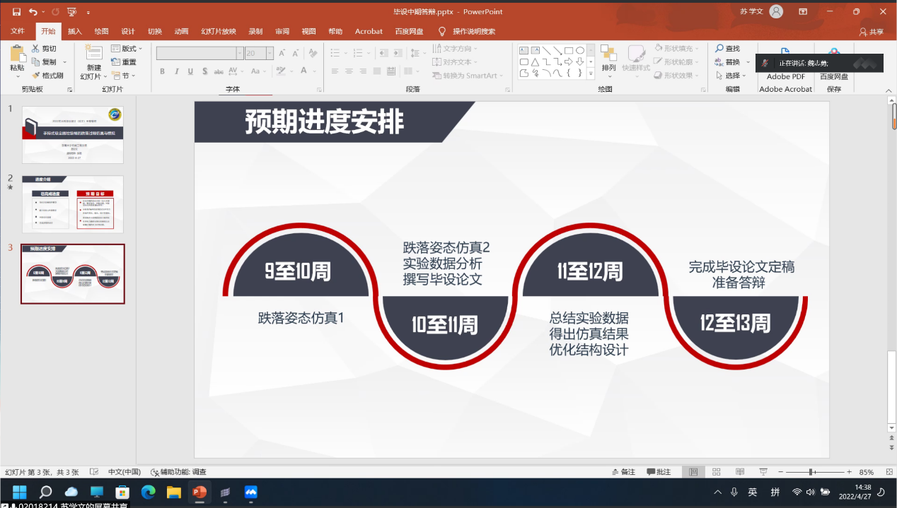 本次毕业设计中期交流会旨在帮助本科毕业生更好地完成毕业设计任务、促进学生与老师之间和学生与学生之间的交流。希望本科毕业生们能够重视毕业设计任务、重视项目过程中的每一个事项、认真完成每一个细节,为自己的本科生涯交出一份满意的答卷。