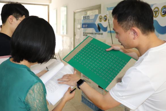 三组评审老师轮流到各个学生作品展板前,与学生交流毕业设计项目,详细了解其研究背景、内容方法、结论成果以及主要创新点,对参展项目进行了客观评价,并针对研究不足之处提出了建议与期望。最终通过统计评审老师为项目的评分,从参展项目中评选出优秀毕业设计进行推荐。