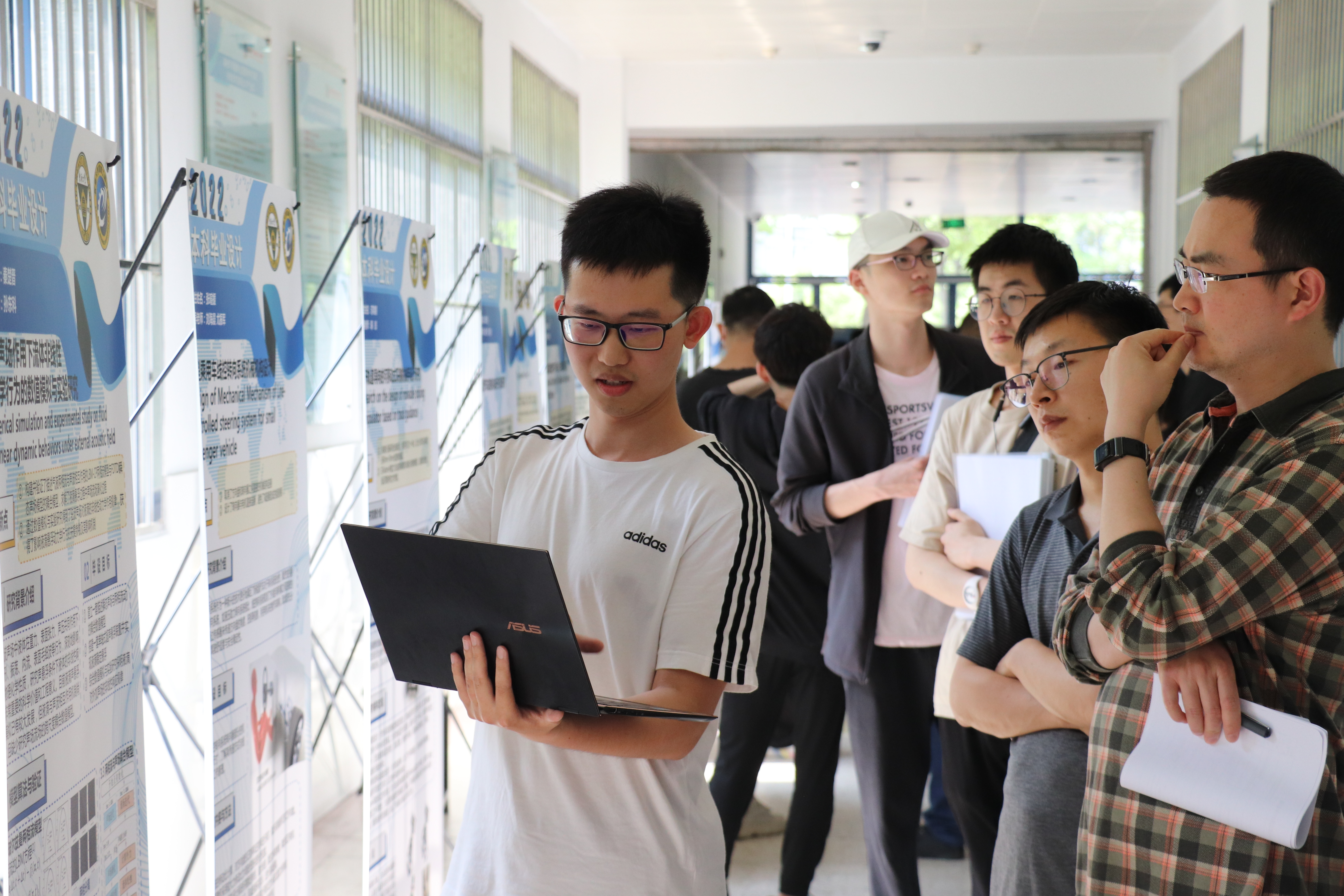 为庆祝东南大学120周年校庆,展示机械学院毕业生风采,2022年6月1日,机械工程学院2022届本科生优秀毕业设计展在机械楼一楼大厅举行。本次优秀毕业设计展总共有51个项目参展,来自机械工程与工业工程专业的本科毕业生通过展板、视频、报告、实物等形式向评审老师与现场观众展示了毕业设计项目的研究成果。