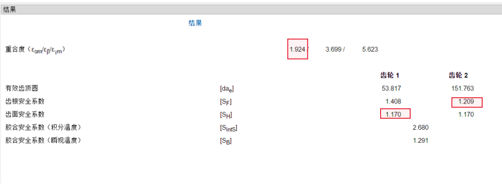 - 经过配齿调整参数后,我们将齿轮端面重合度从1.423提升到1.924,并且齿轮的最小齿根重合系数和最小齿面重合系数均满足要求;