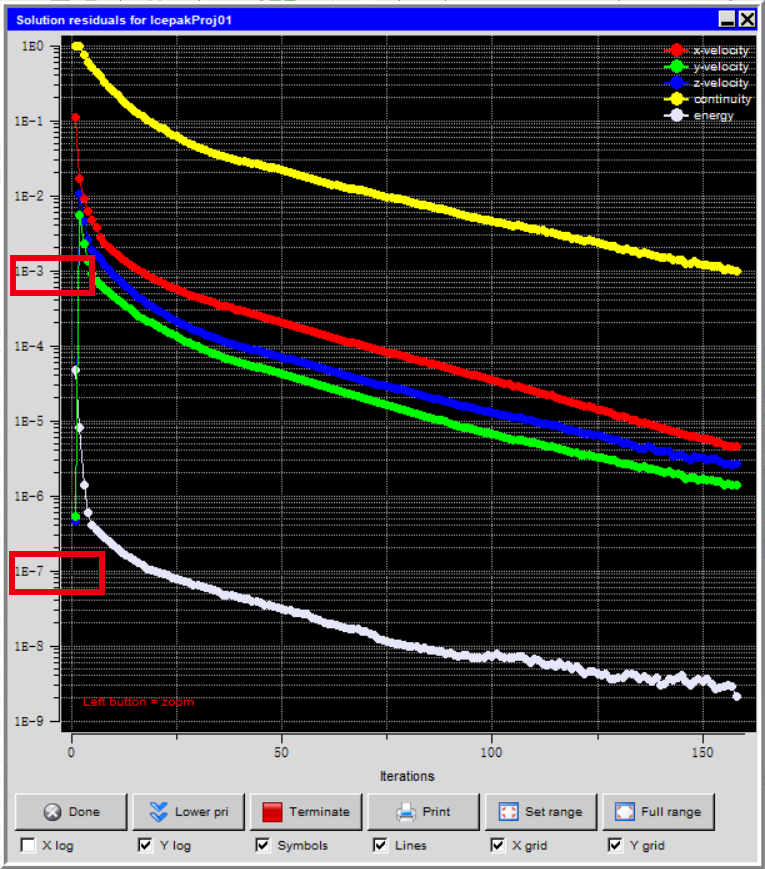 ③变量监控点。如果残差曲线显示求解已经收敛,但是监控点的变量仍有变化,进出口质量和热量不守恒,那么此情况表示求解计算尚未完全收敛,修改Basic settings中Flow和Energy的残差标准数值,继续计算,使其收敛。