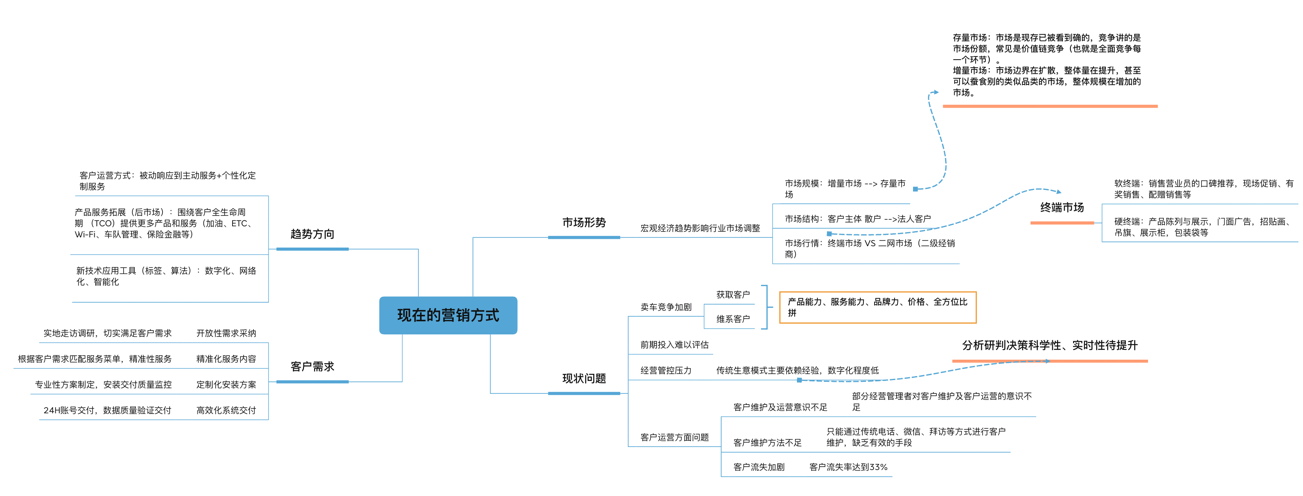 1)分别从经济、技术和政策的角度对物流行业的市场形势进行了调研。市场的规模从增量市场转变为存量市场,客户主体也有从散户到法人的趋势。新技术的发展带动了车辆的智能化、网联化,也让物流运输更加精细化、专业化、数字化。此外,政策的调控使物流结构的调整趋于优化。