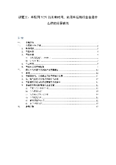 本项目立足于汽车车联网行业发展,通过对四个课题:时代背景与伟大产品的诞生、汽车行业企业发展、V2X技术和商用车运输行业的未来场景、新势力造车企业的发展机遇的调研与分析,以实现对产业现状、发展前景的初步探索与思考。