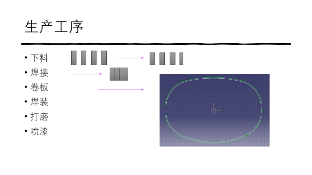 了解了油罐罐体的制造工艺编制的过程,并进行了焊接机器人的实际操作。由于企业保密的需要,下面是简单的生产工序流程,实际操作也不能拍照。罐体两端封头的三维建模,此封头的独特设计,给企业工艺人员的三维建模带来了一定的困扰,多年未能解决好此问题,同学们开动脑筋,敢于创新,独辟蹊径,经过大家的努力,完美的解决了企业的实际问题。