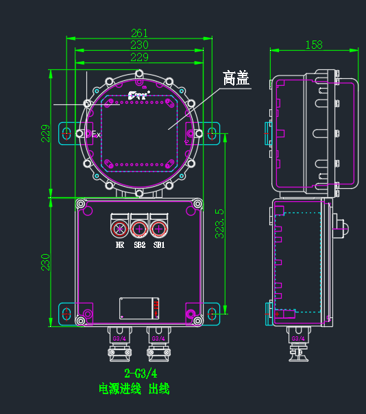 此项目是一电气控制项目,对于机械专业学生的心理是一挑战,经过几天的学习及老师的指导,掌握了防爆电磁起动器的电路设计及元器件的选型。进行了电磁起动器及防爆箱的三维建模。