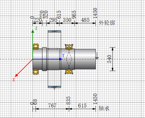 轴承设计要求:选用进口标准轴承,NU轴承承受纯径向力,配对TRB(SRB)轴承承受轴向力+径向力,轴承寿命计算依据ISO281。