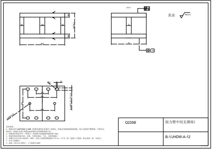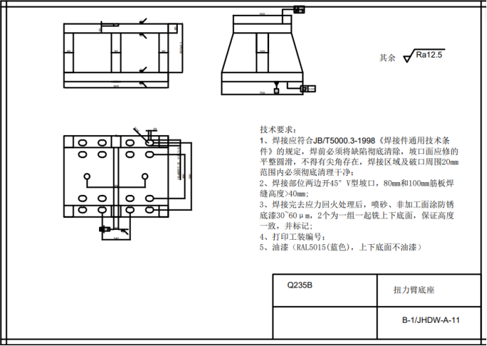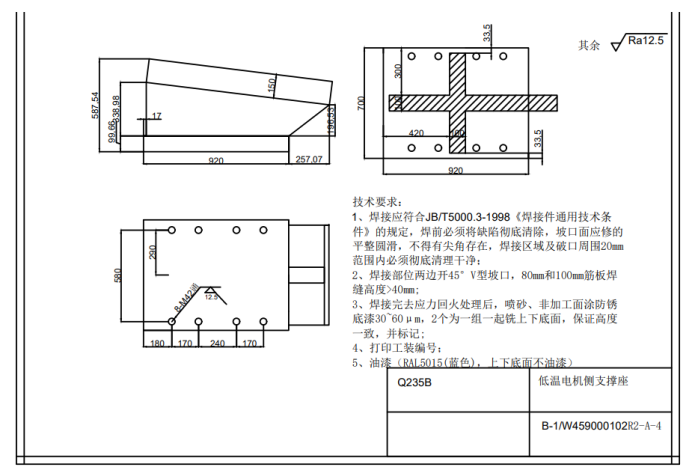 结构件设计要求:采用铸件或焊接件,轴承座厚度、箱体壁厚等根据机械设计手册推荐值或经验值设计,不做有限元计算