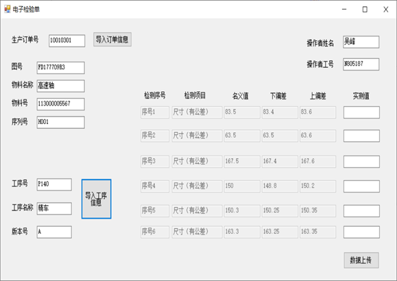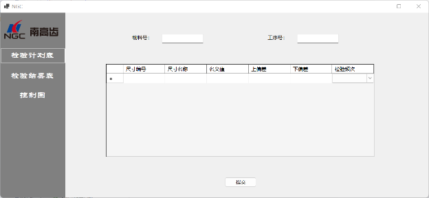 设计UI交互界面,主要完成对零件工艺的检验计划表与检验结果维护表、折线图表的设计。